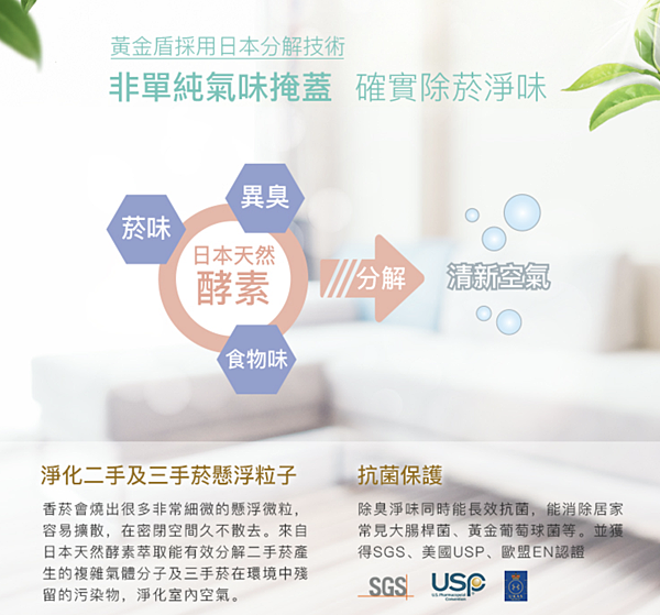 產品功能特點:日本除臭科技(如下圖),消除頑強煙味,非氣味掩蓋型產品,同時消除居家常見病菌,添加清新綠茶精油,清爽舒適