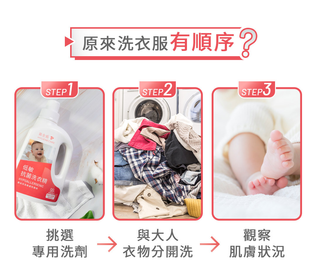 Step1.挑選專用洗劑➡︎ 成人洗衣精易添加過多化學物