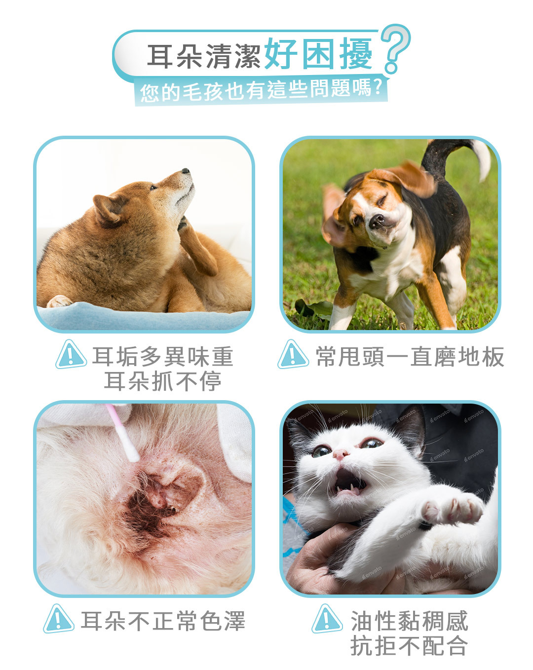►適用範圍:清潔犬貓耳道,容易出油、耳道有異味、耳道分泌物或耳垢變多、耳道異味、耳炎等情況皆適用。