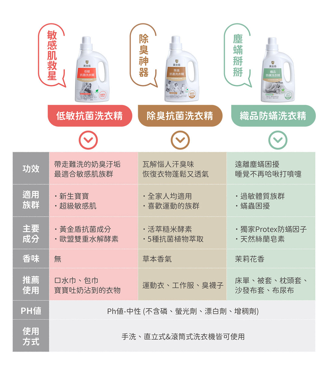►主要成分:純水、椰油醯胺丙基甜菜鹼、月桂基葡萄糖苷、非離子界面活性劑、月桂醇聚硫酸脂鈉、抗菌劑、五合一酵素、防蟎因子、絲蘭皂素、茉莉香氛。