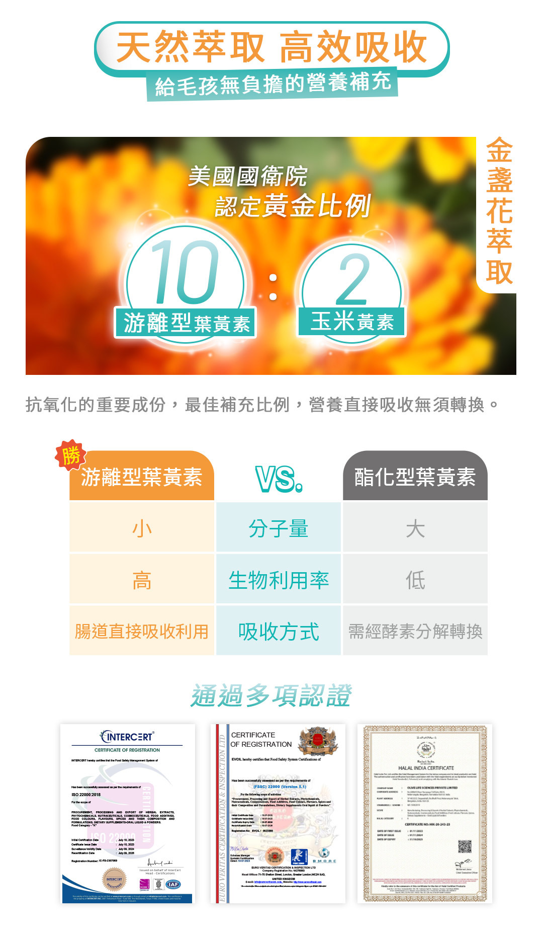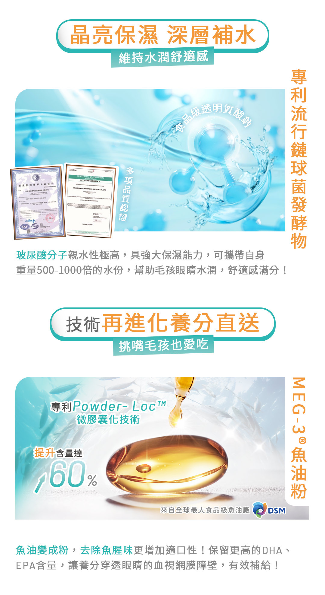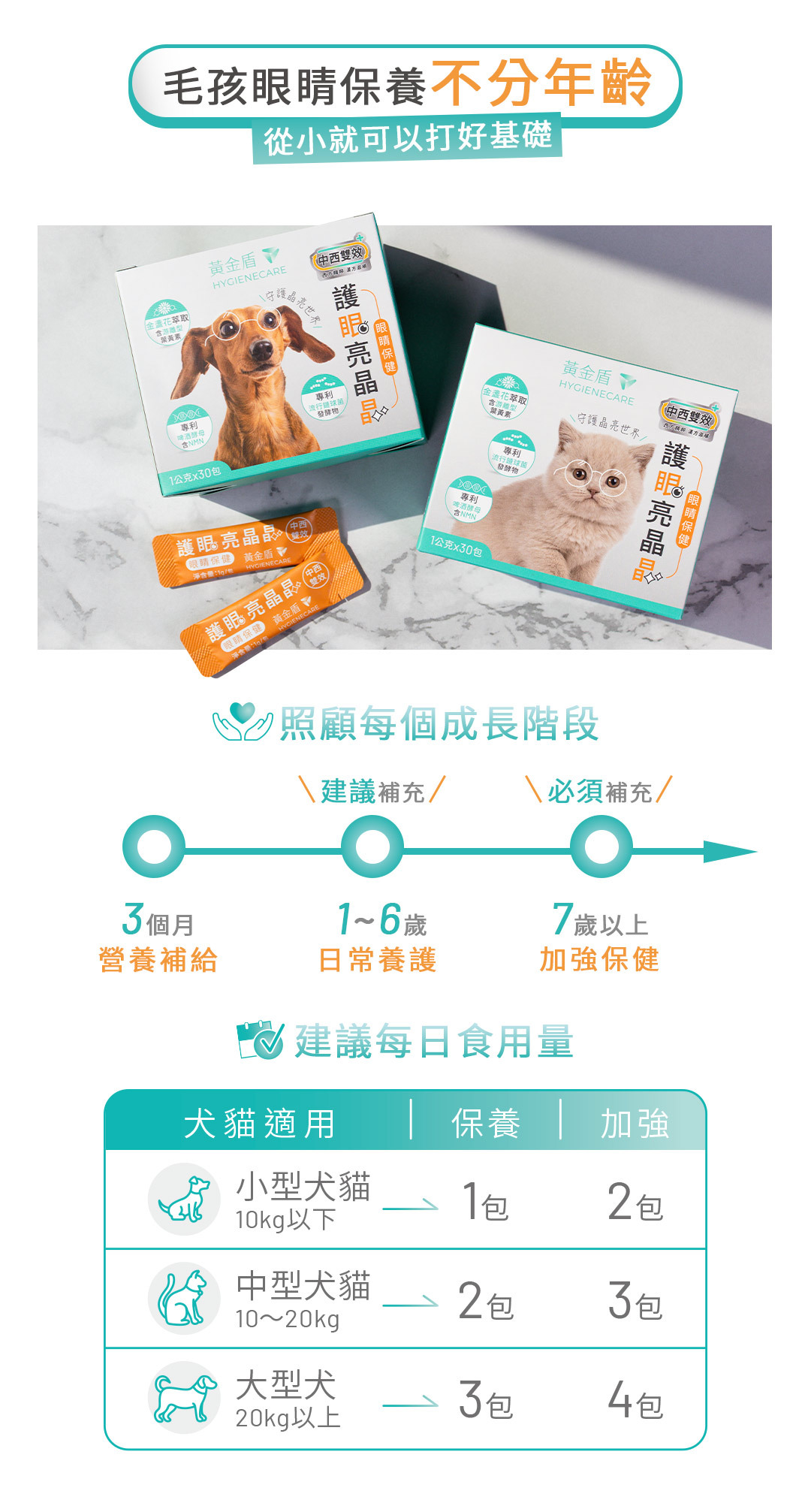 | 推薦使用 | 眼睛保健、眼液平衡 | 腸道及免疫保健 | 皮膚及毛髮保健 |