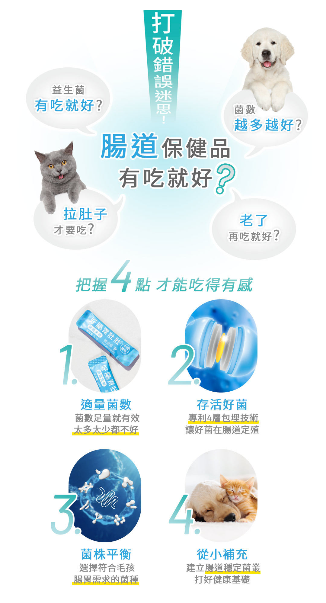 ✔每包50億總菌數,犬貓適用菌種,菌株平衡搭配