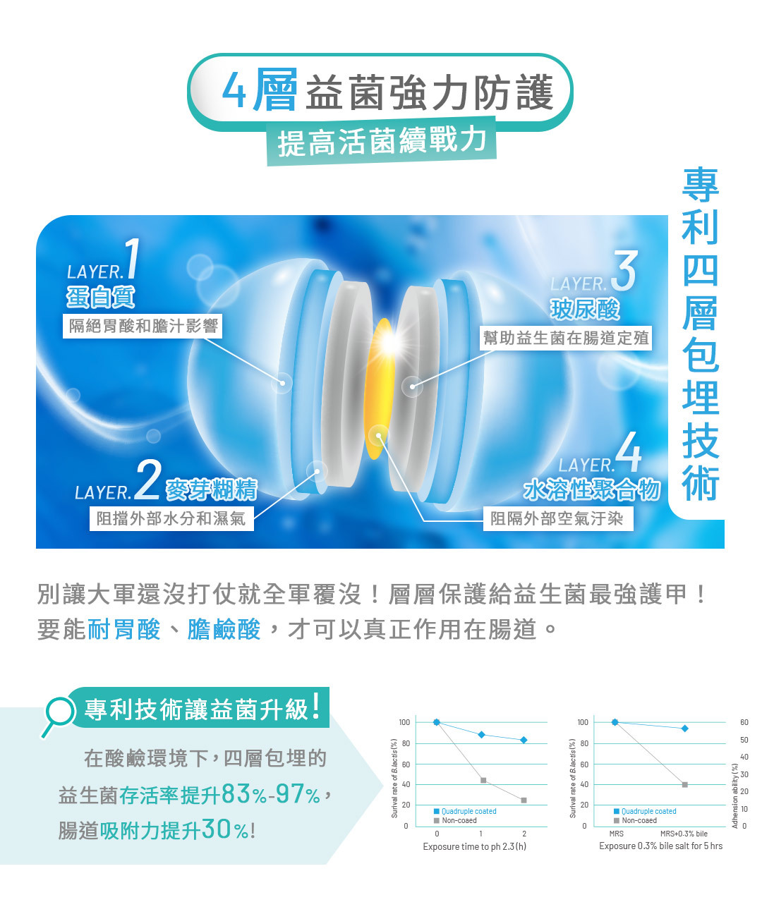 ✔專利四層包埋技術,提升好菌腸道定殖力