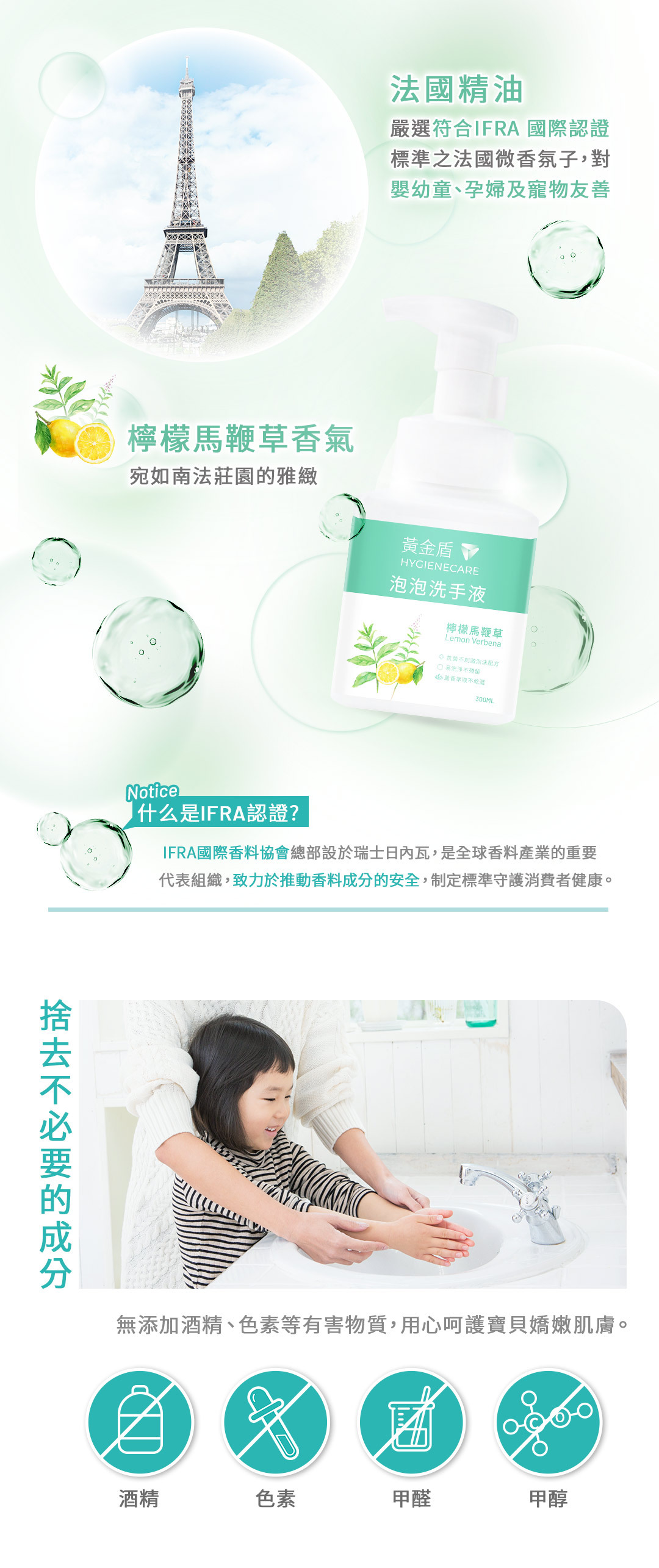 黃金盾泡泡洗手液嚴選天然植萃成分,層層呵護每次的洗手體驗: