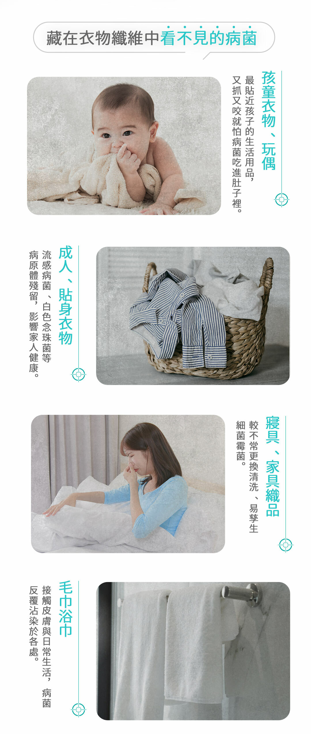 ✔有效移除附著於衣物上的微生物及病原體