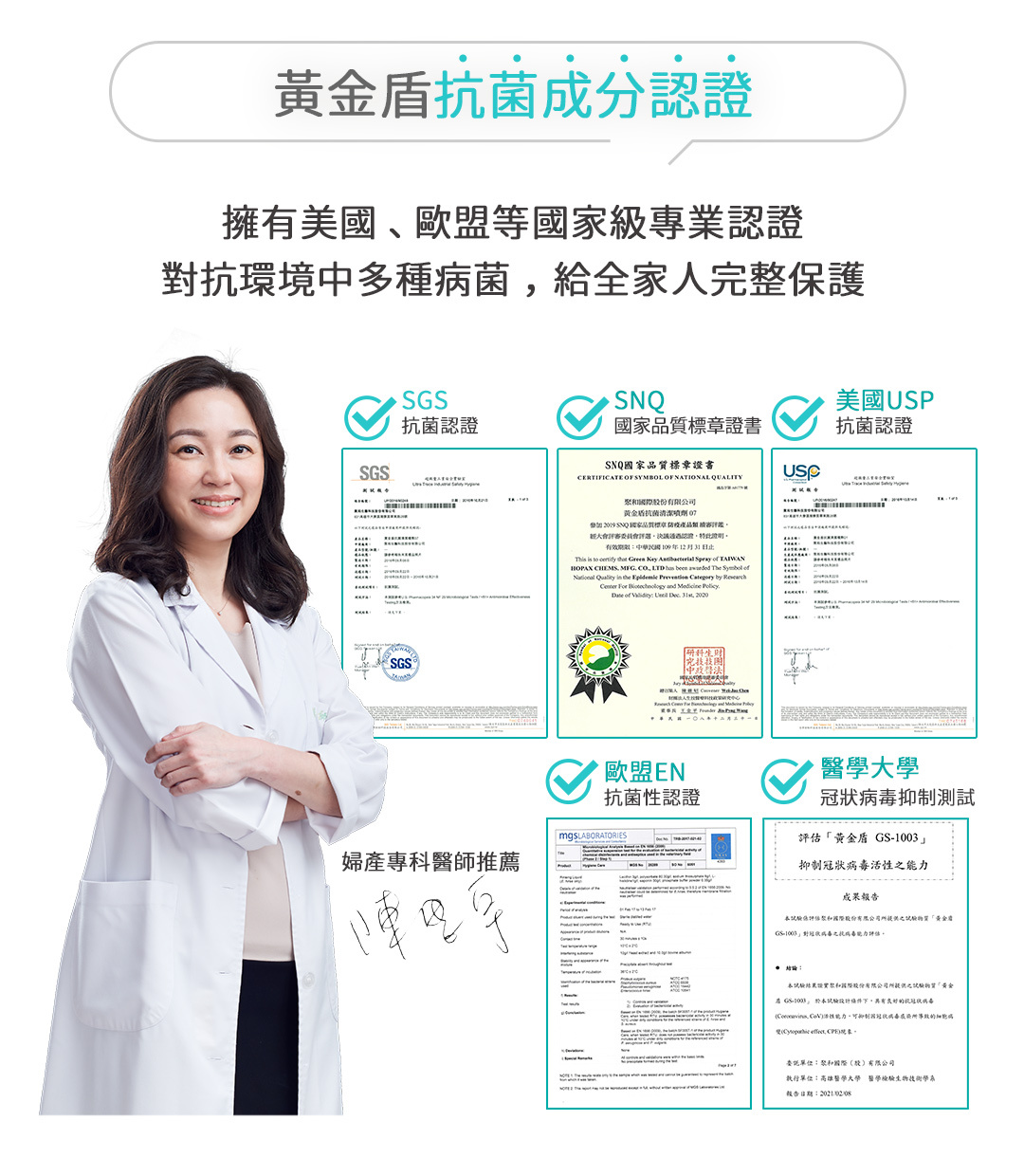 ✔添加黃金盾抗菌因子,抗菌力達99%以上