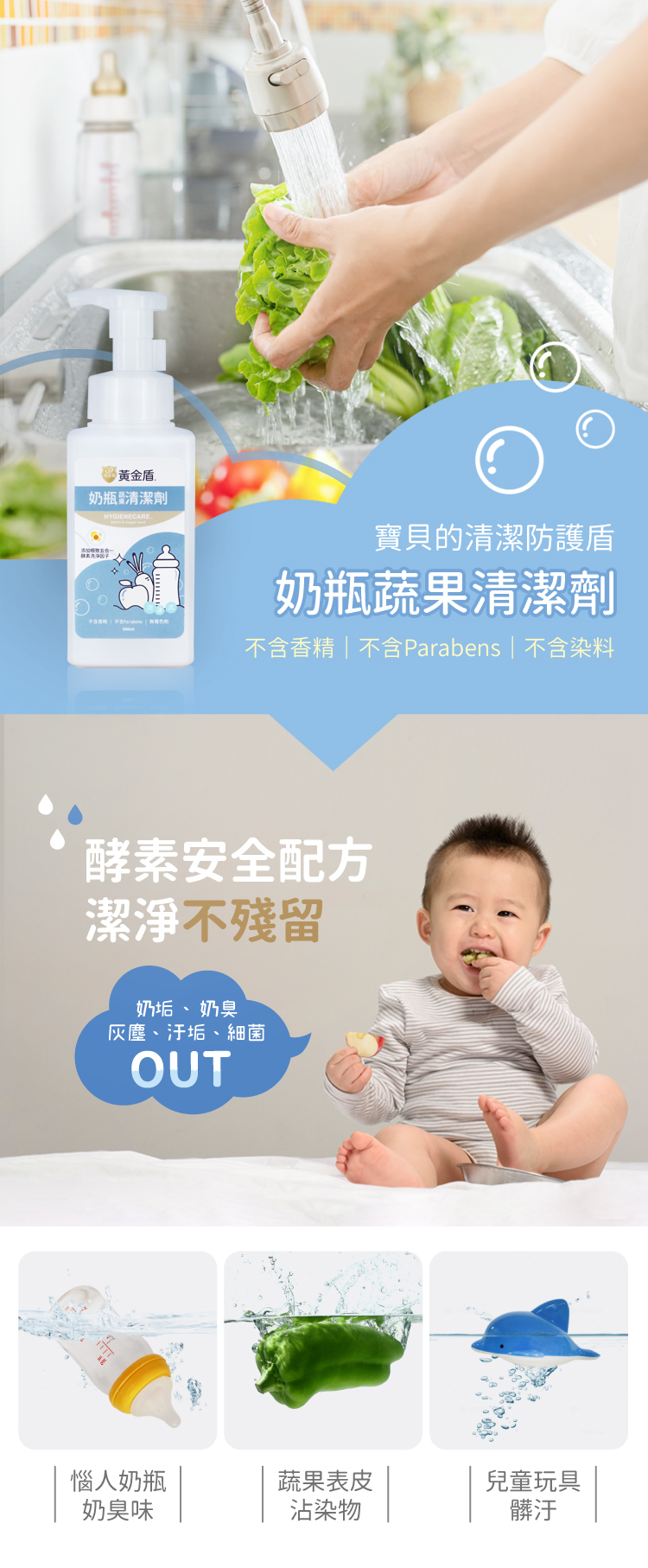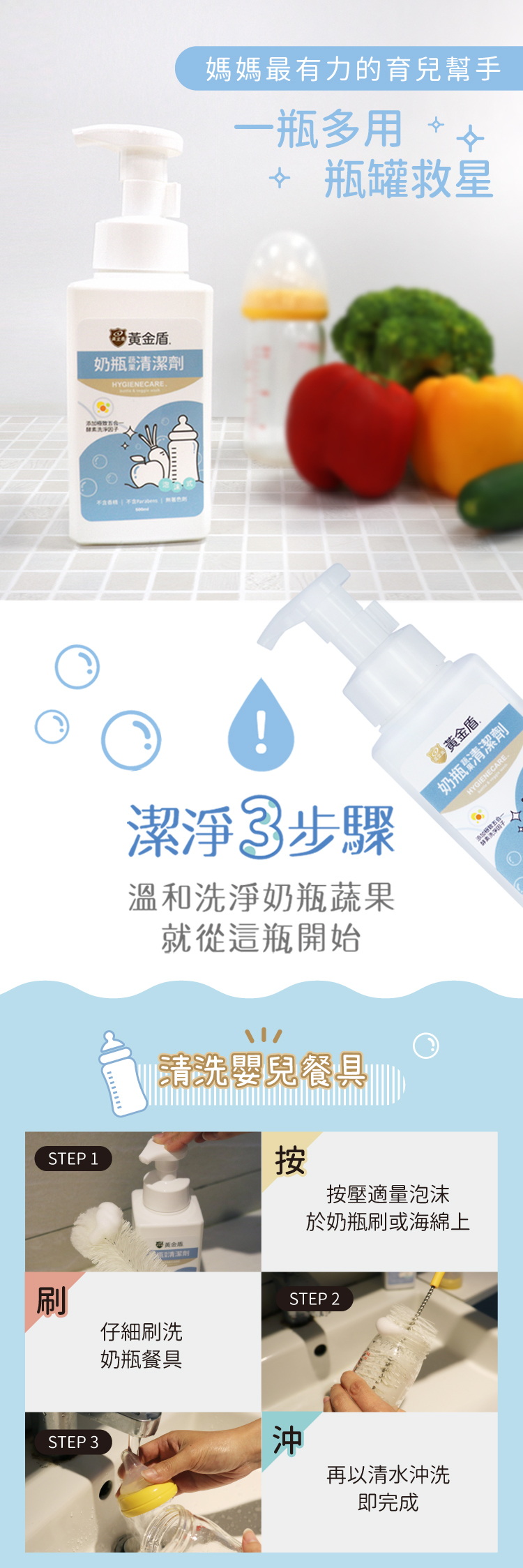 ►內容:黃金盾奶瓶蔬果清潔慕斯(500ml)x1、黃金盾奶瓶蔬果清潔慕斯補充包(1000ml)x2