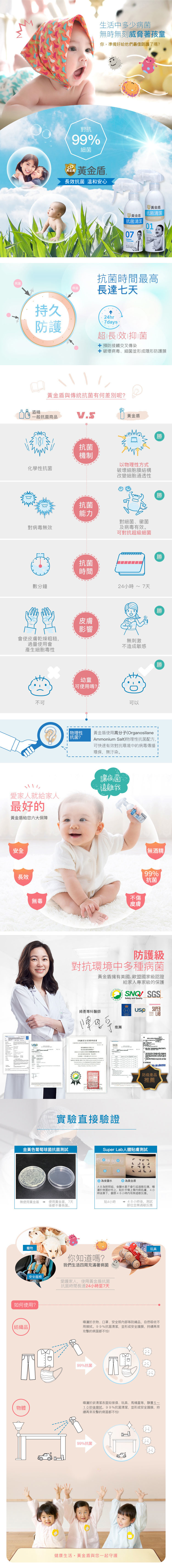 ►內容:黃金盾抗菌清潔噴劑07(200ml)*1、黃金盾抗菌清潔噴劑07隨身瓶(60ml)*3、黃金盾抗菌清潔噴劑07補充包(1000ml)*1