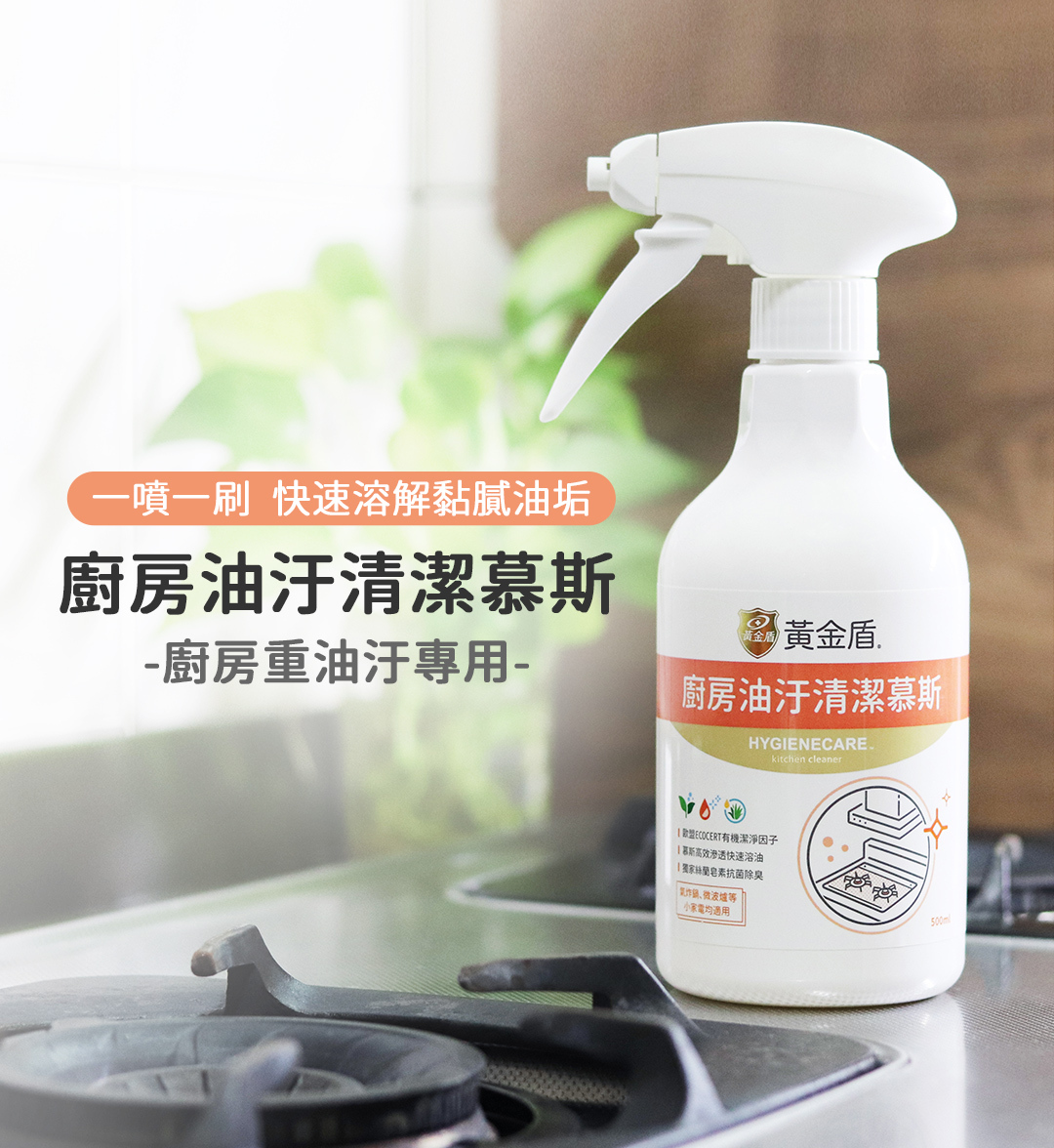 ►內容:黃金盾廚房油汙清潔慕斯(500ml)x2