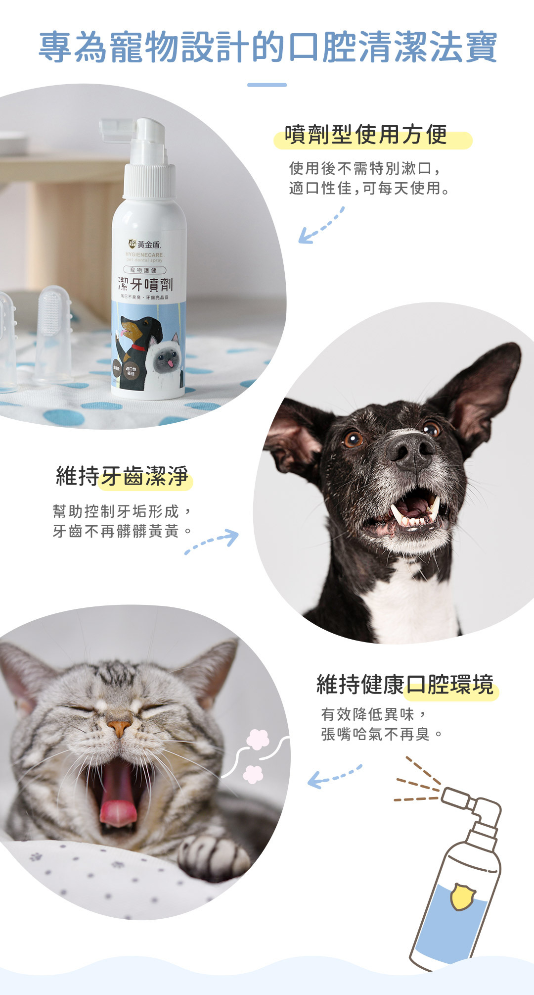 ►使用方法:每天1-2次,噴在寵物牙齒與牙齦兩側,各噴2-3下即可。亦可用指套或牙刷幫寵物刷牙,加強潔淨效果。