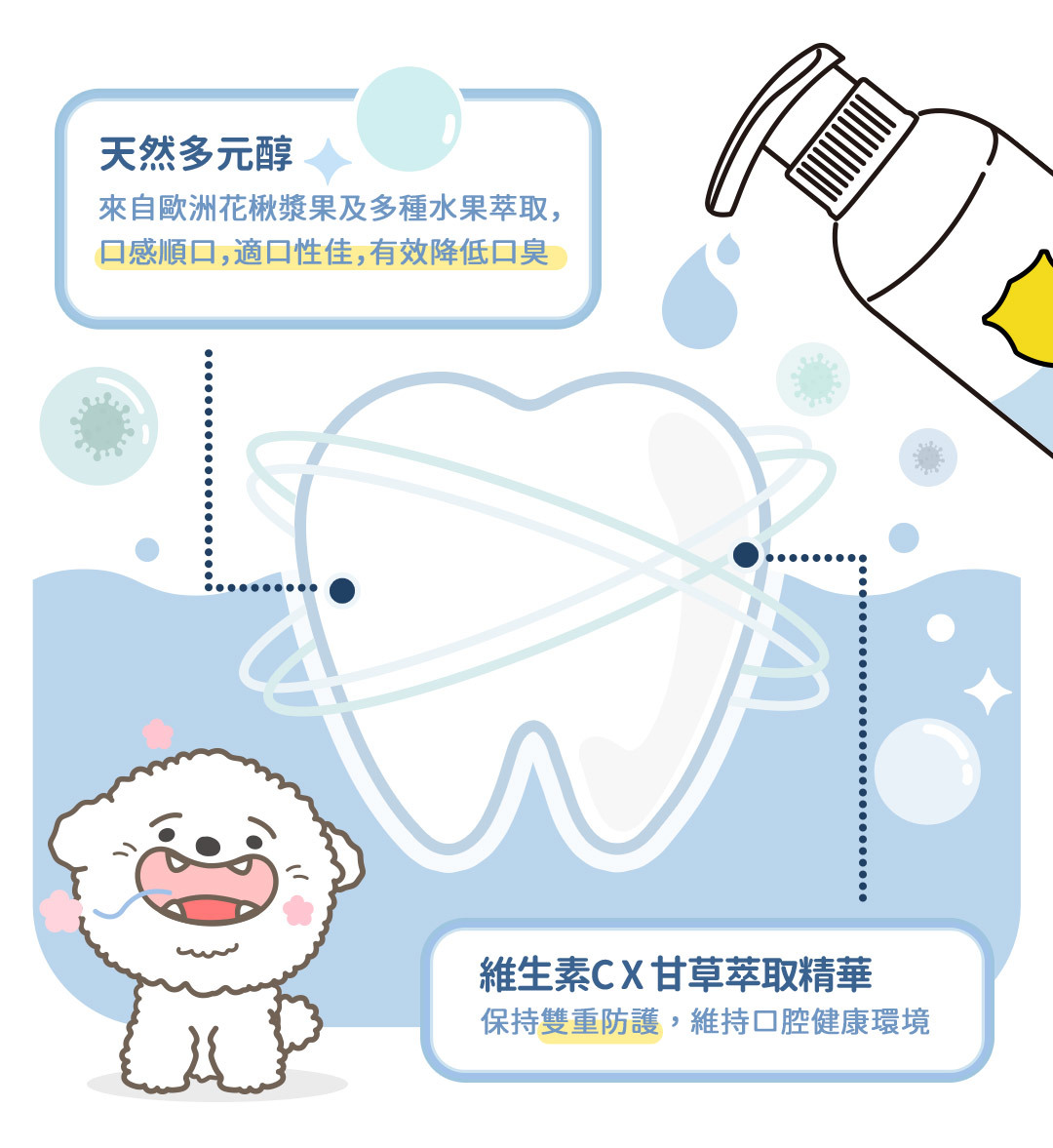 ►內容:寵物潔耳液100ml*1、寵物天天潔牙水250ml*1、寵物食器專用洗滌慕斯500ml*1