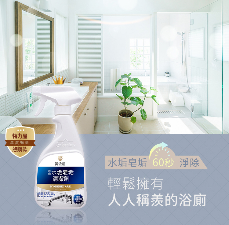 ✔60秒淨除水垢皂垢,同時抗菌防霉