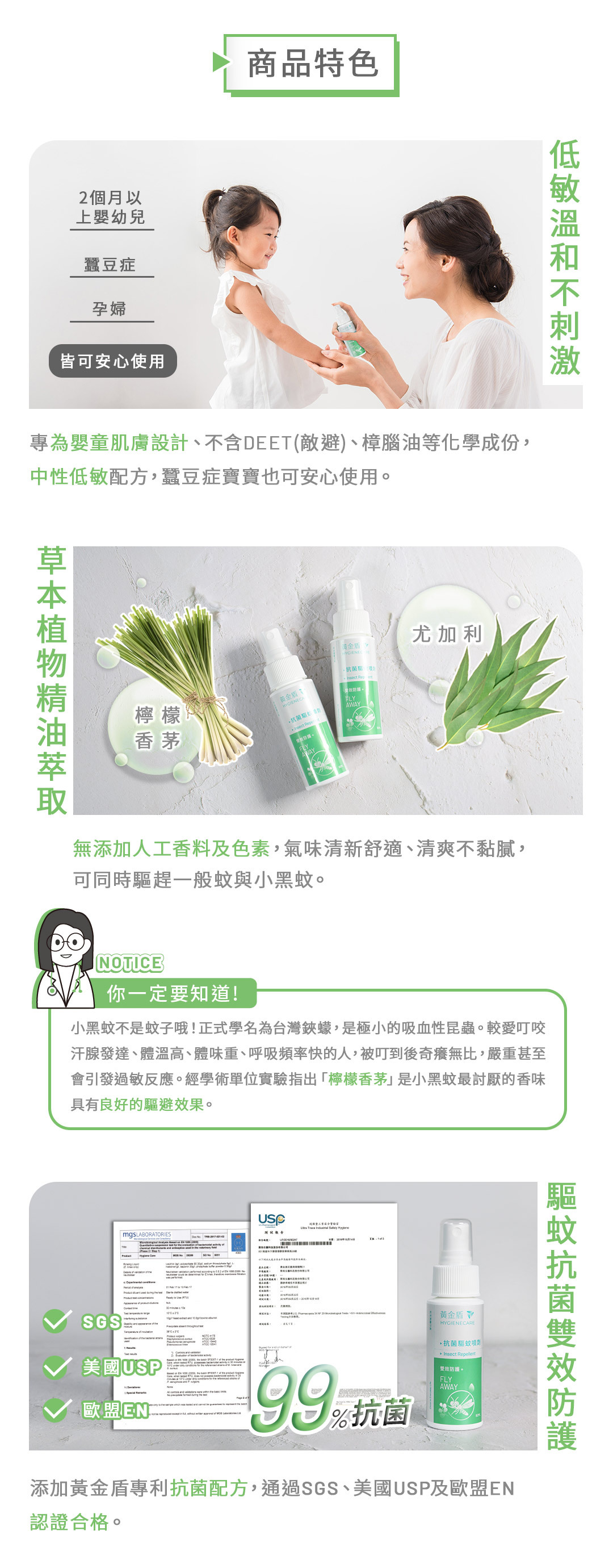 ✔不含化學成分DEET(敵避)、樟腦油