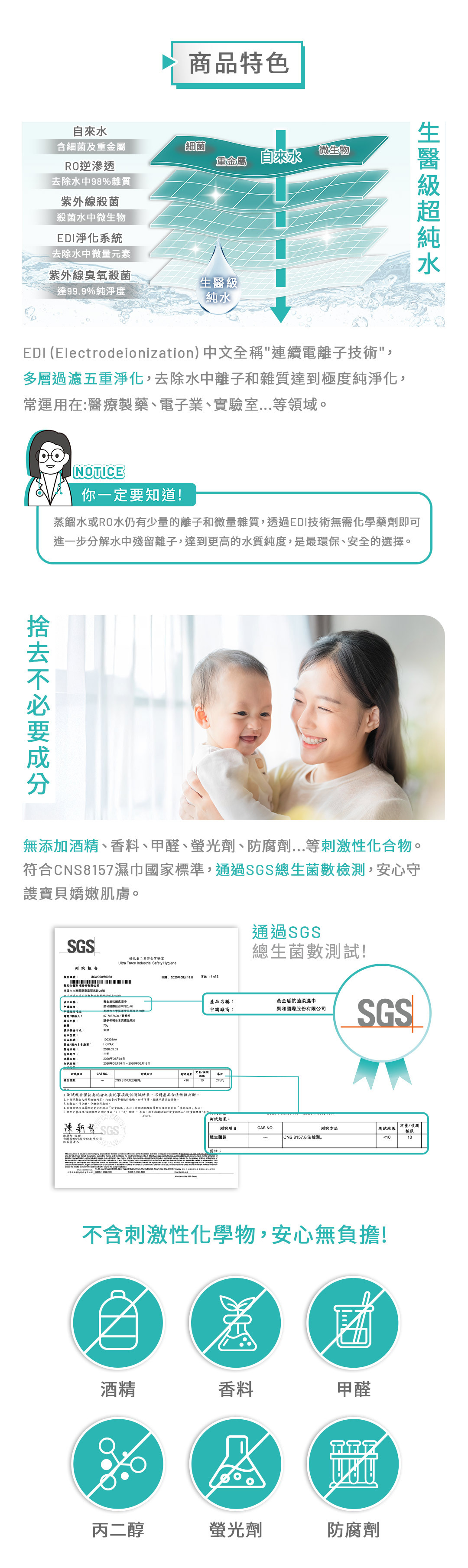 ✔不含酒精、香料、甲醛、丙二醇、螢光劑、防腐劑