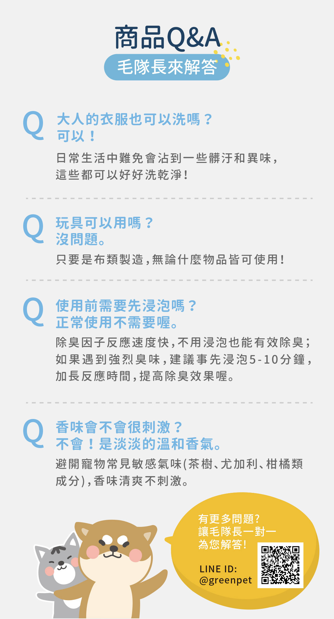 ✔獨家異味分解因子,強效分解尿臭、口水臭、體臭等異味
