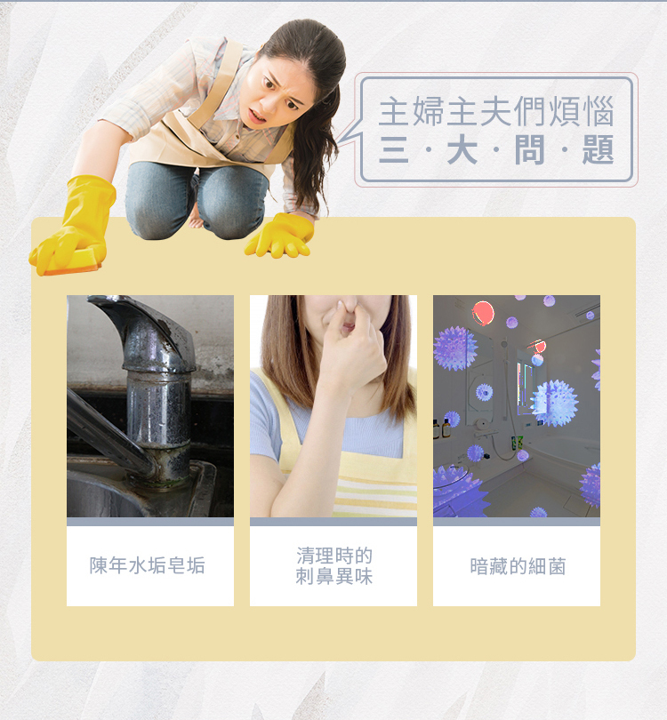 ✔60秒淨除水垢皂垢,同時抗菌防霉