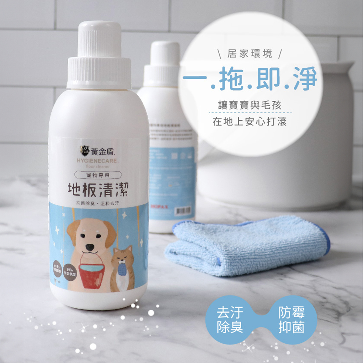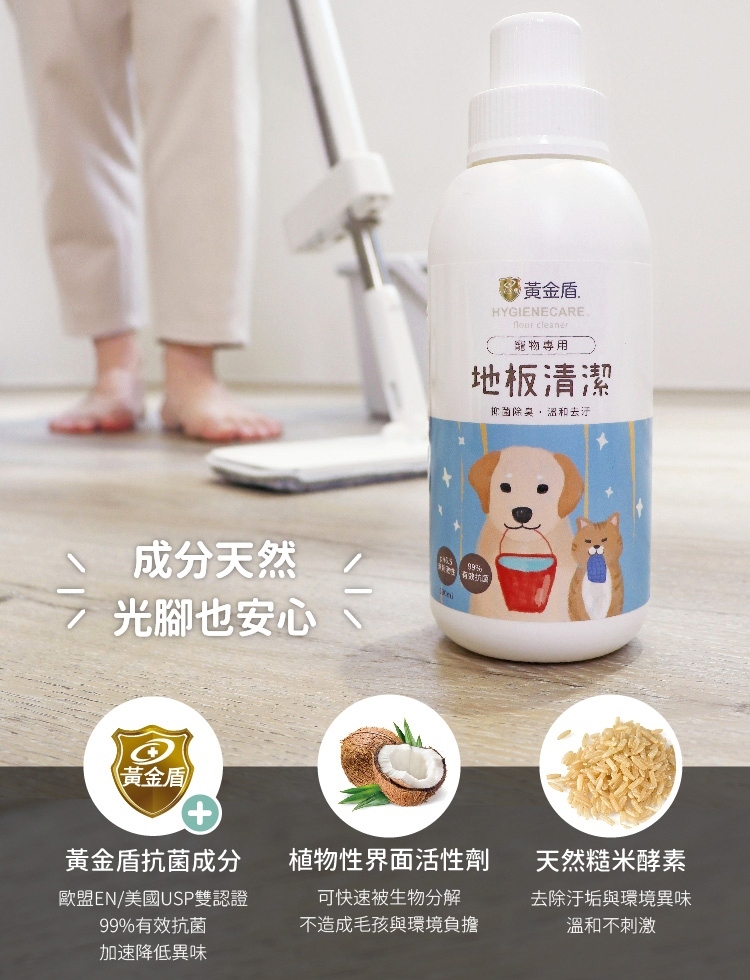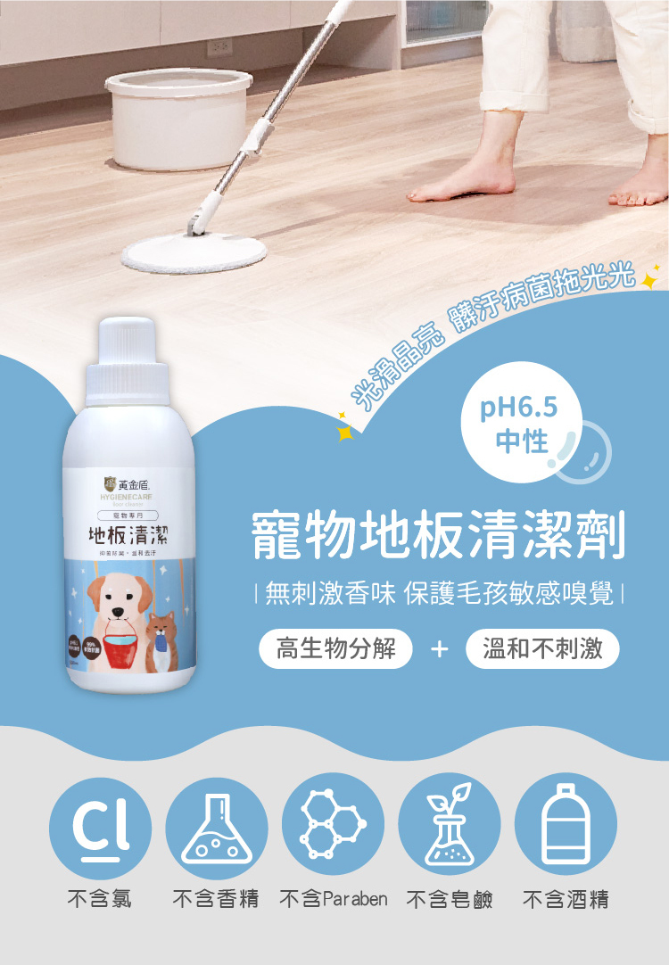 ※本產品不適用掃拖機器人,歡迎參考黃金盾掃拖機器人專用地板清潔劑,孩童及寵物友善。